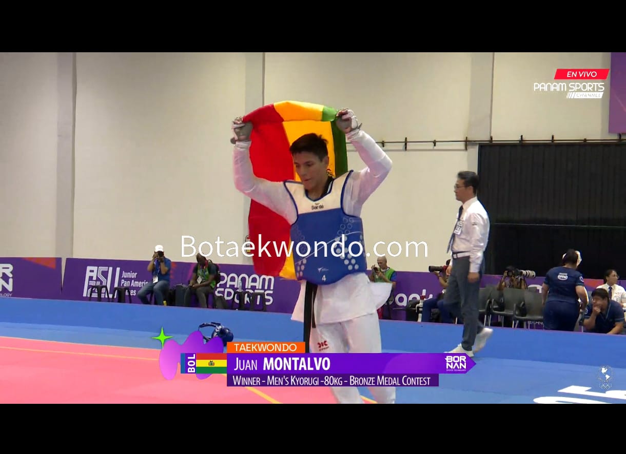El taekwondista Juan Pablo Montalvo hizo historia al conquistar la medalla de Bronce 🥉🇧🇴 en la categoría -80 kg durante los Juegos Panamericanos Junior, habiendo ganado su primera pelea contra el paraguayo Mauro Melgarejo ,tras una emocionante final de repechaje frente a Tavárez de Puerto Rico.